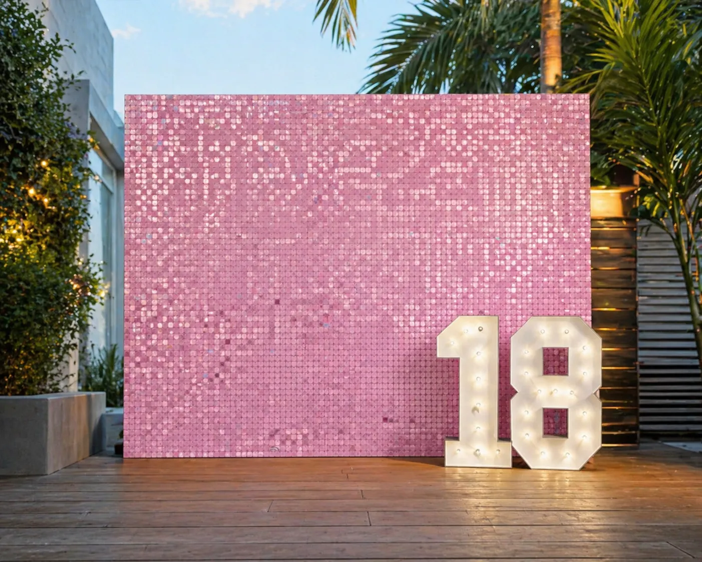 The full-size panel creates strong visual coverage, while the sequin finish reflects light throughout the space, giving your event a polished, photo-ready look from every angle.