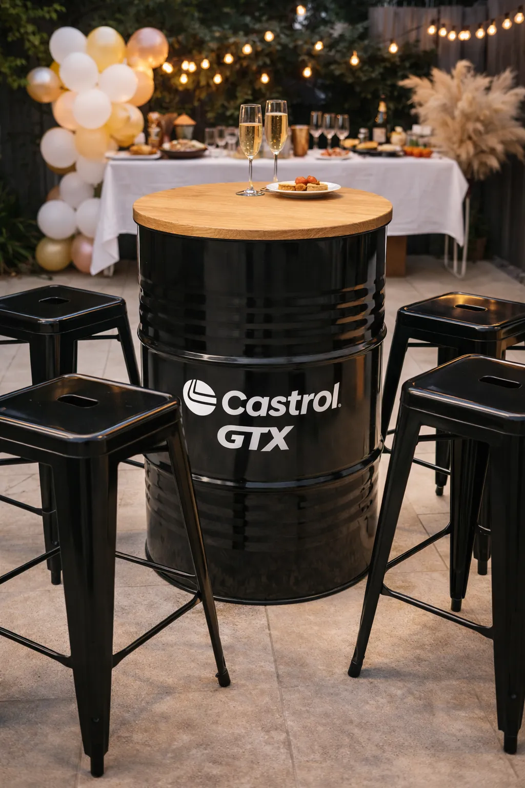 Add colour, character and functionality to your event with our BLACK Drum Bar Table. Designed to stand out while still blending seamlessly into a wide range of event styles, this piece works beautifully for relaxed gatherings, corporate functions, brand activations and celebrations of all kinds.