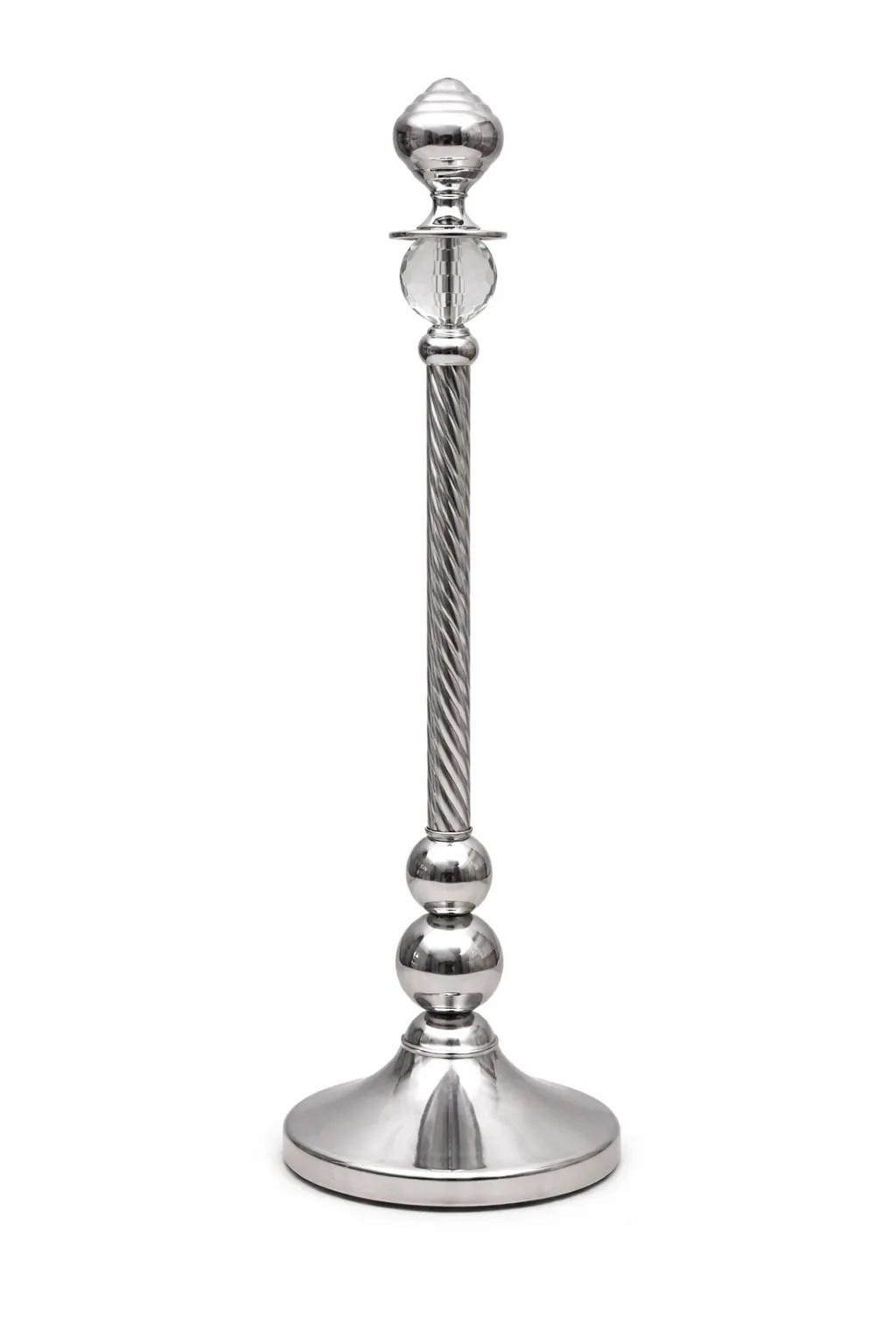 The polished silver finish is complemented by a subtle crystal feature, adding a refined touch that works well across both classic and modern event styles. Its weighted base provides stability, making it suitable for both indoor and outdoor use.