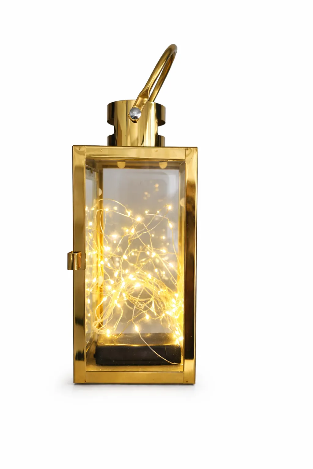 Decor - Decorative Gold Square Style Lantern with Light inside