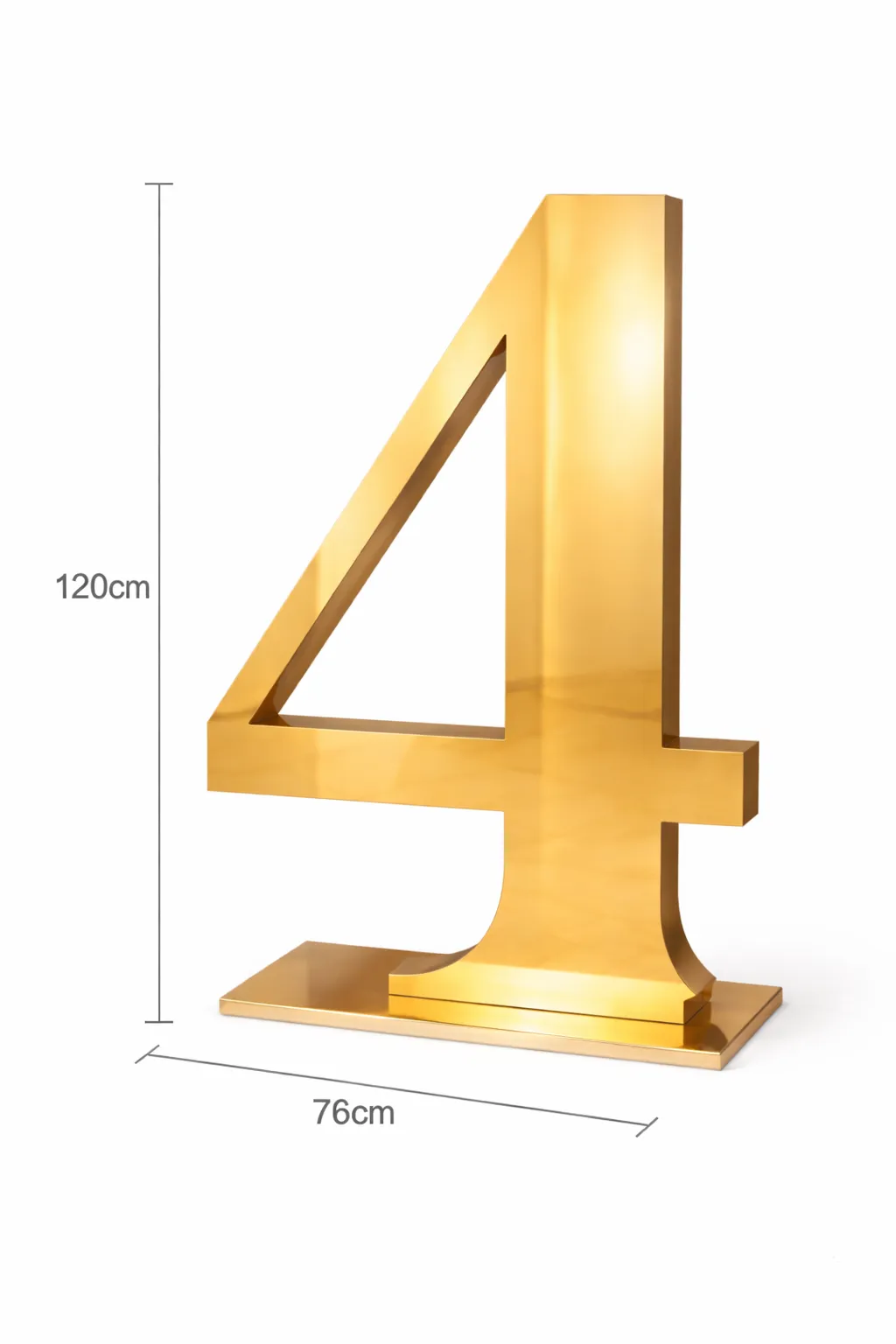 Celebrate in style with our Large GOLD Standing Number 4, designed to make a lasting impression at milestone birthdays, anniversaries, weddings, and corporate events. With a sleek reflective finish, these oversized numbers create a striking focal point for entrances, photo backdrops, and stage displays.