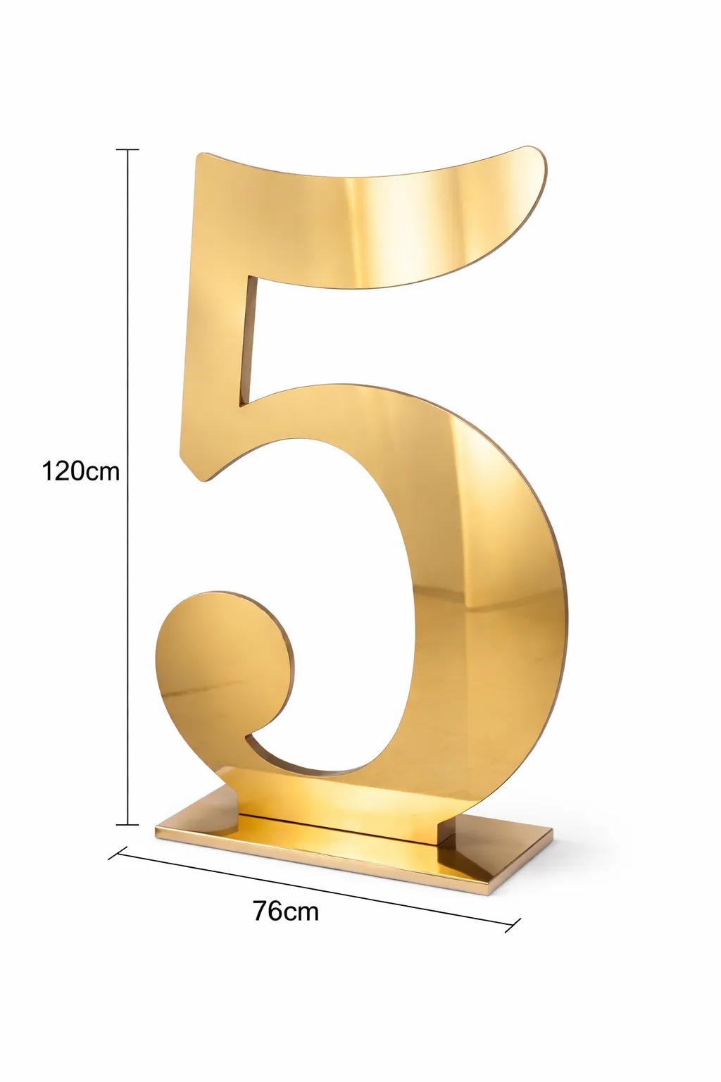 Celebrate in style with our Large GOLD Standing Number 5, designed to make a lasting impression at milestone birthdays, anniversaries, weddings, and corporate events. With a sleek reflective finish, these oversized numbers create a striking focal point for entrances, photo backdrops, and stage displays.