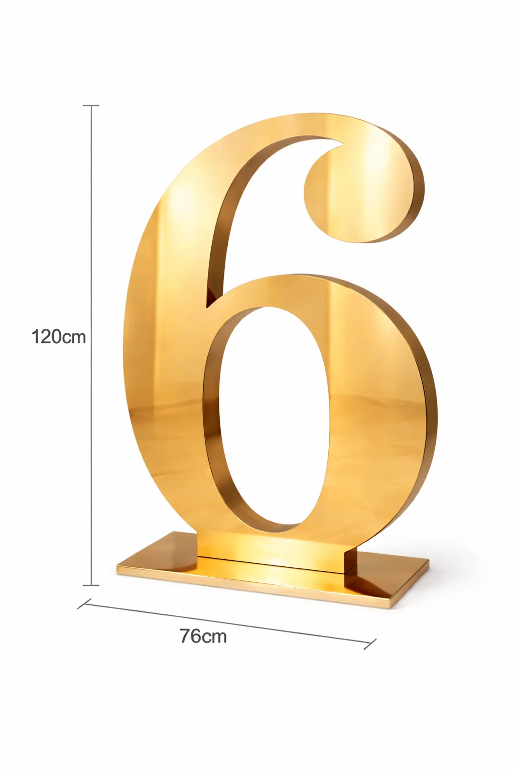 Celebrate in style with our Large GOLD Standing Number 6, designed to make a lasting impression at milestone birthdays, anniversaries, weddings, and corporate events. With a sleek reflective finish, these oversized numbers create a striking focal point for entrances, photo backdrops, and stage displays.