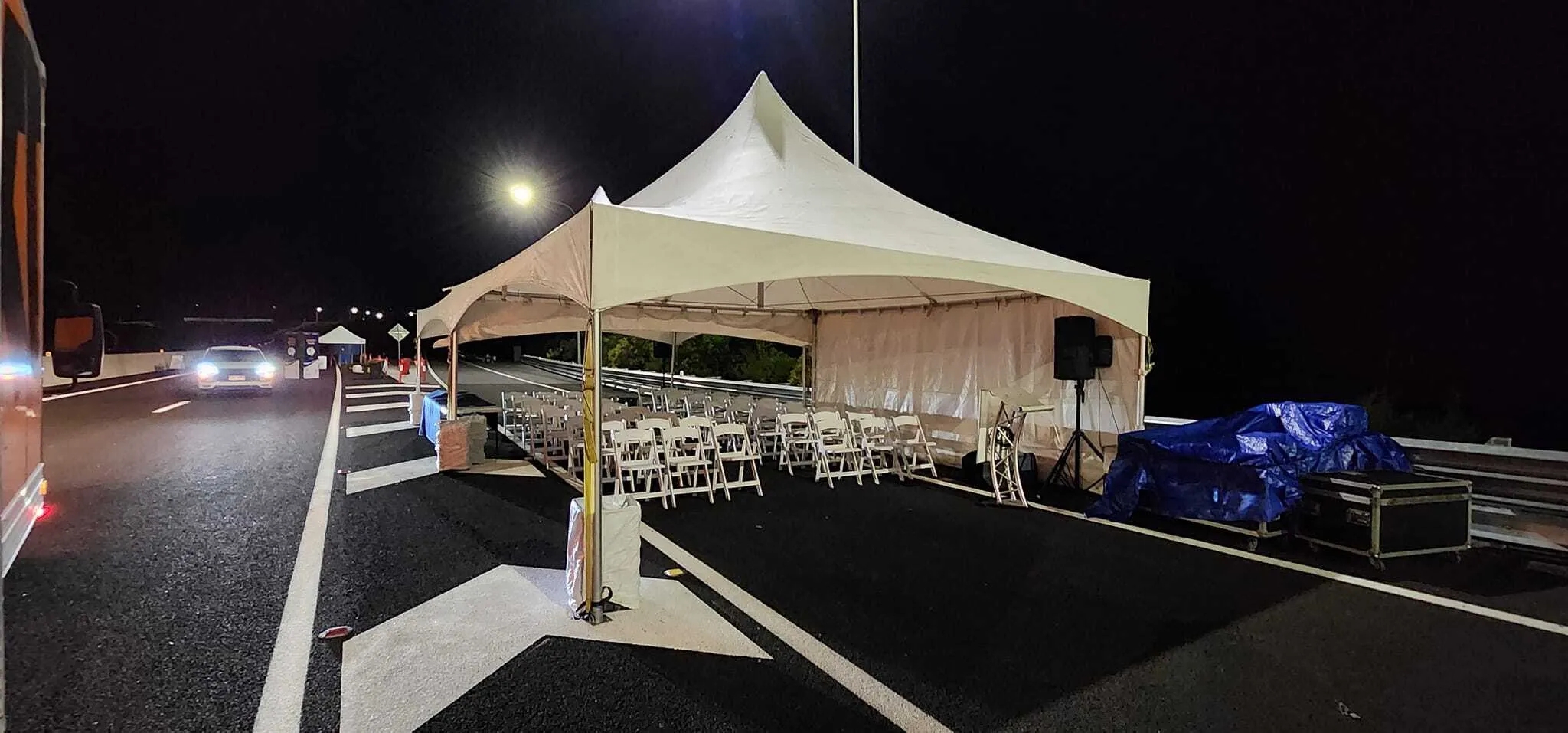 Solid white walls can be added to any side for weather protection or privacy, making this marquee adaptable to changing conditions. The structure is professionally installed and either weighted or pegged, with no ropes required around the perimeter, allowing for better use of surrounding space.