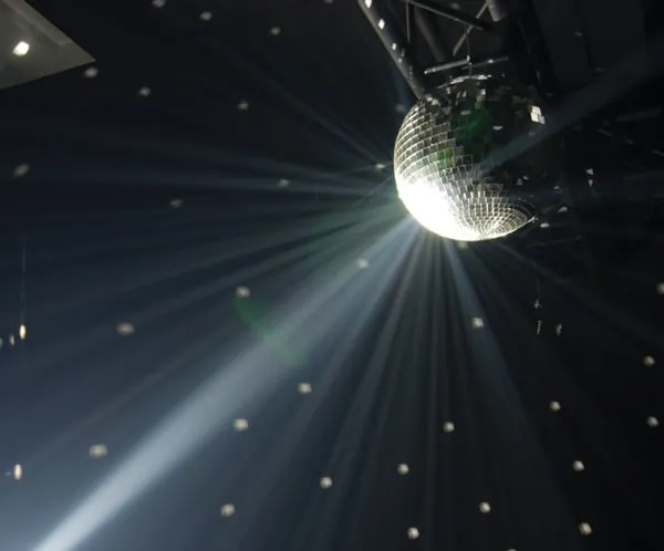 Create a classic dancefloor atmosphere with our Mirror Ball, designed to hang from the ceiling inside a marquee or indoor venue. When connected to power, the mirror ball rotates smoothly, reflecting light across the space to create a timeless and elegant party effect that suits both formal and relaxed events.