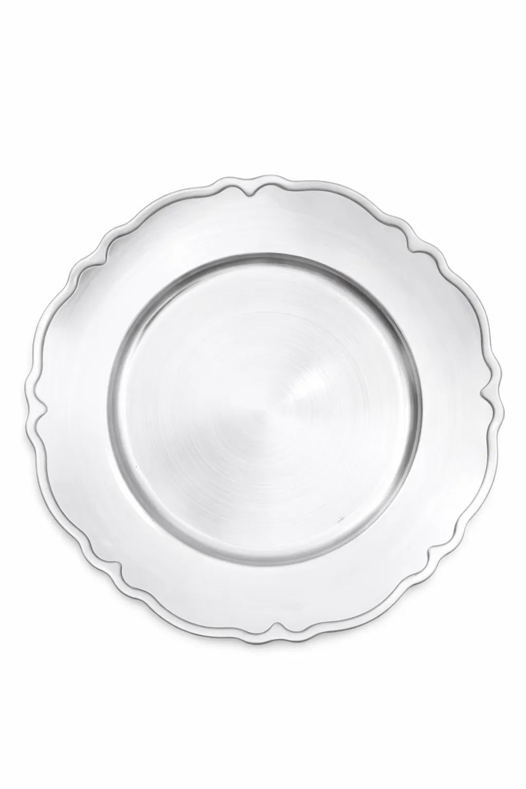 Add a warm, refined finish to your table settings with our silver flower charger plate. Designed to sit beneath your dinnerware, it helps create a more structured and polished tablescape with minimal effort.