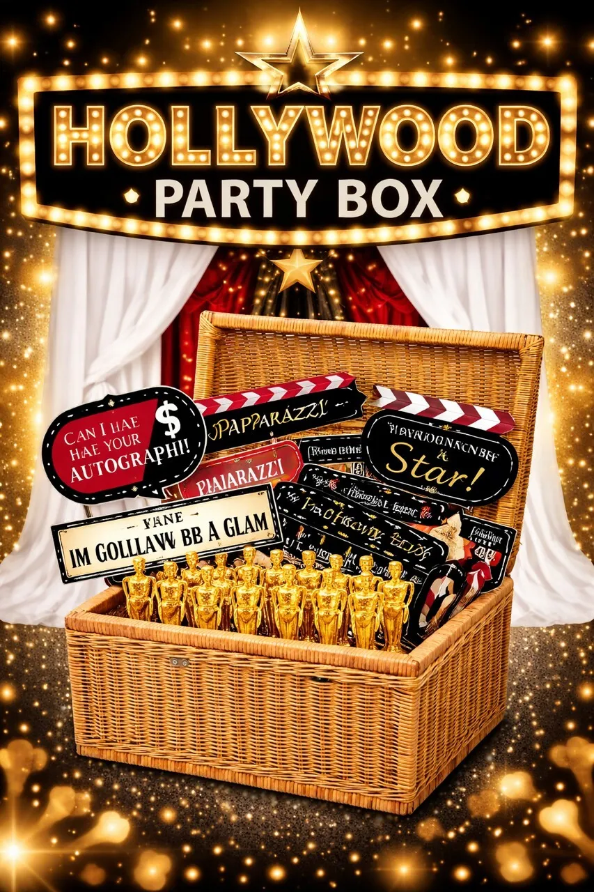 Bring your Hollywood theme together with ease. Our Hollywood Party Basket is your all-in-one styling and entertainment kit, packed and ready to go for a standout event.