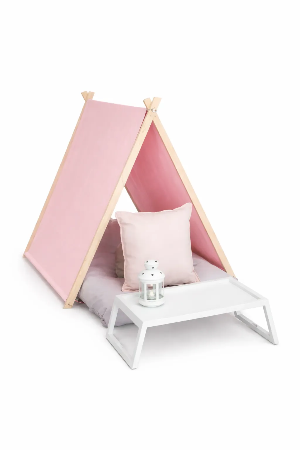 Teepee tent, mattress, blanket. For slumber parties. Light pink.