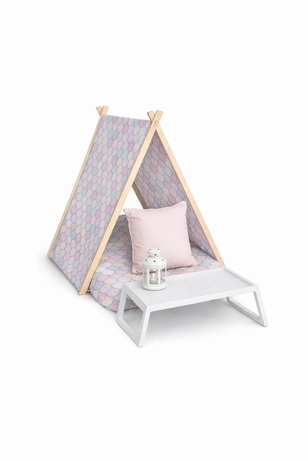 Teepee tent, mattress, fitted sheet, blanket. Suitable for slumber parties. Mermaid Pattern