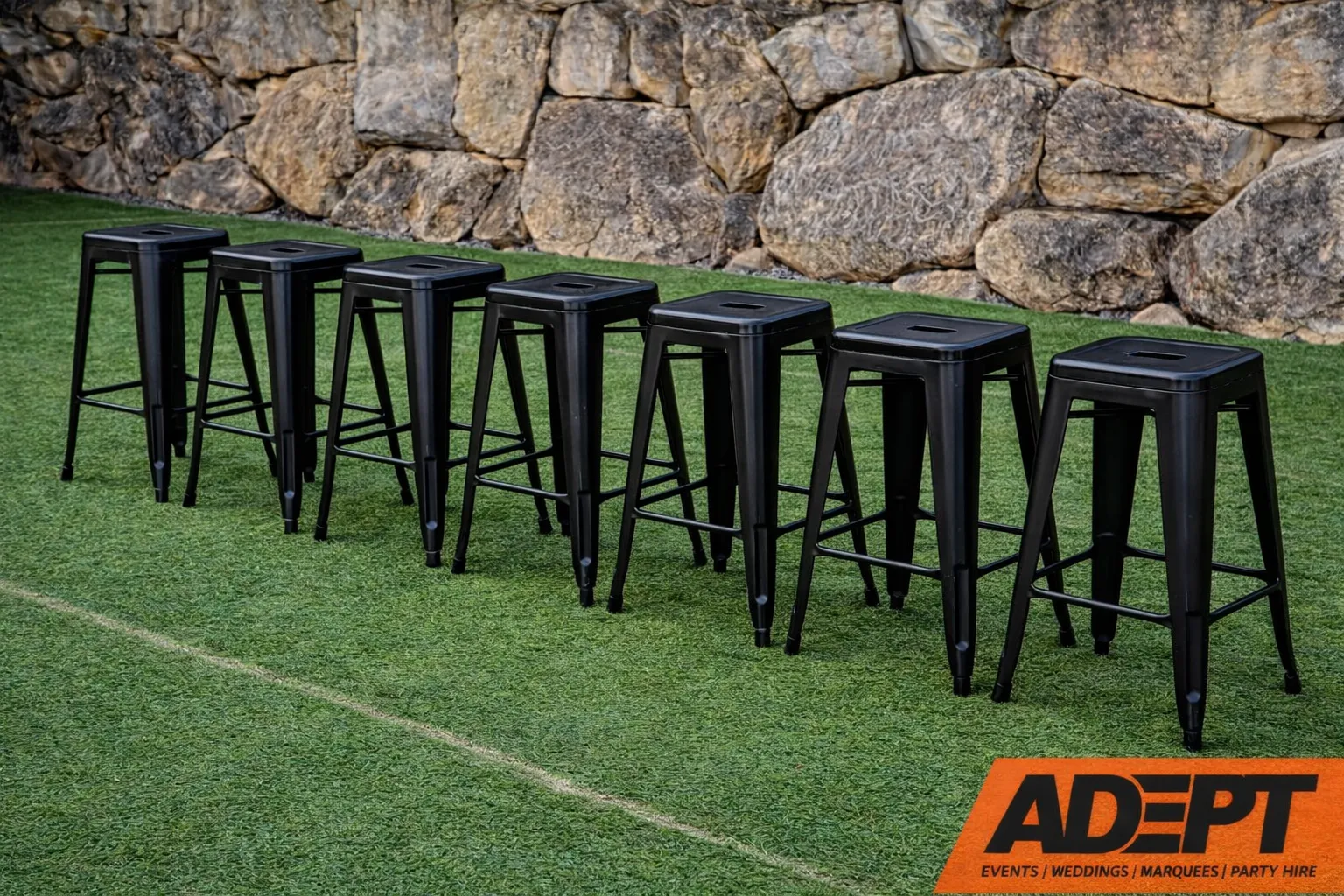 With a clean powder-coated finish and strong steel construction, these stools suit weddings, corporate events, brand activations and styled celebrations where appearance is just as important as comfort.